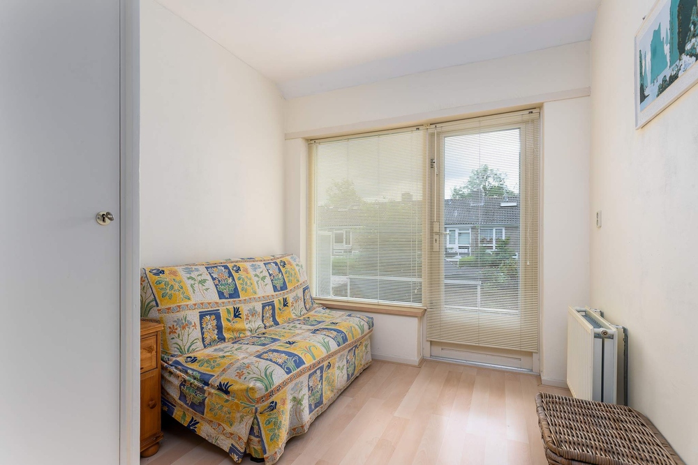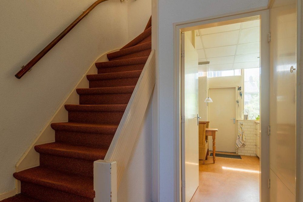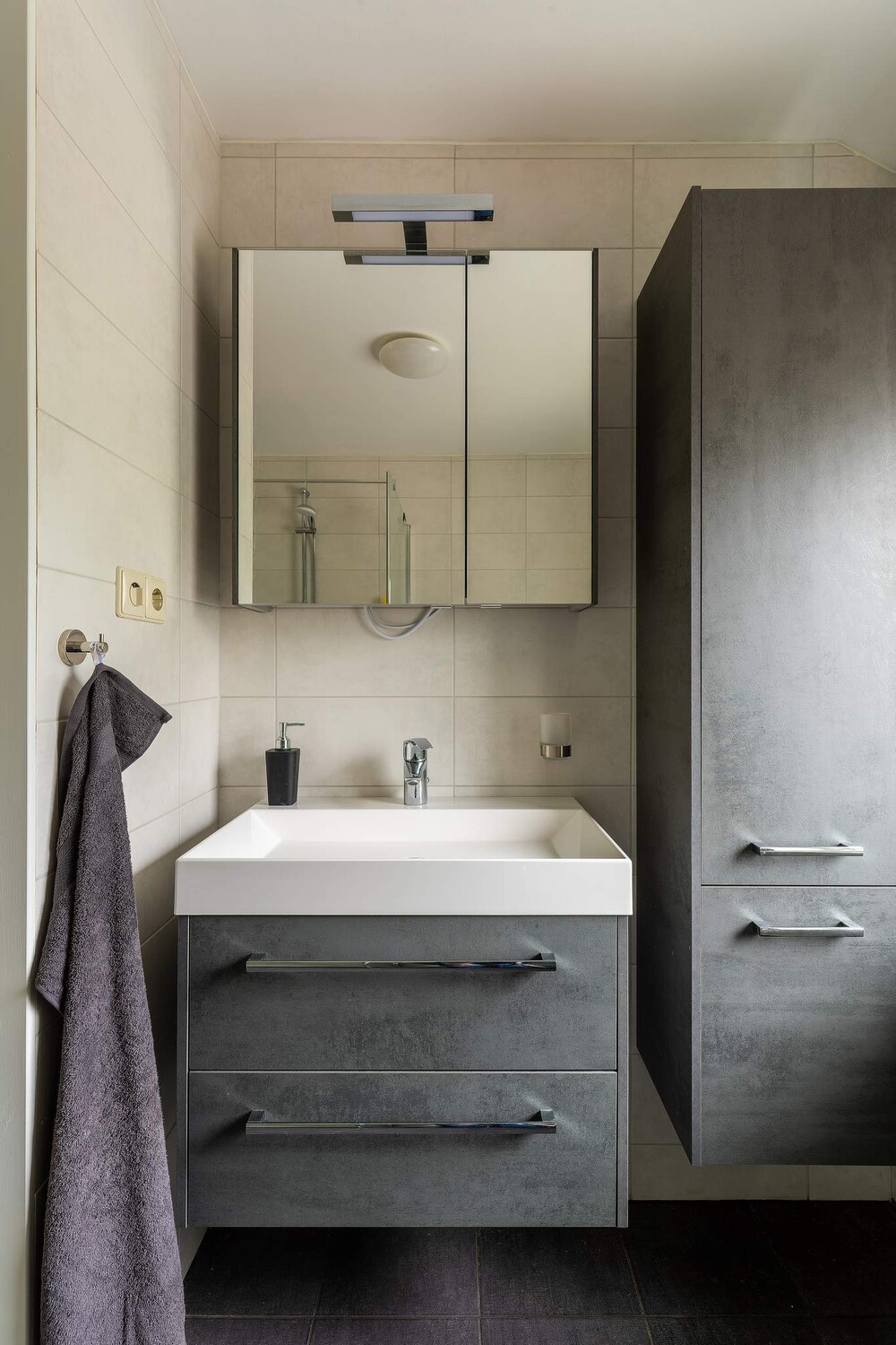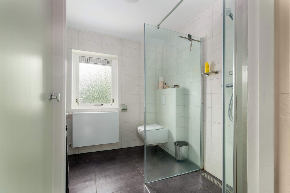 Verdieping: overloop met grote inloopkast welke is voorzien van een trapje naar de zolder.Drie nette slaapkamers van ca. 13, 11 (beide met vaste kast) en 6 m2 (met balkon op zuid).Verzorgde en moderne badkamer (5 m2, 2020 geïnstalleerd) met badkamermeubel, inloopdouche, tweede toilet en vaste kast.