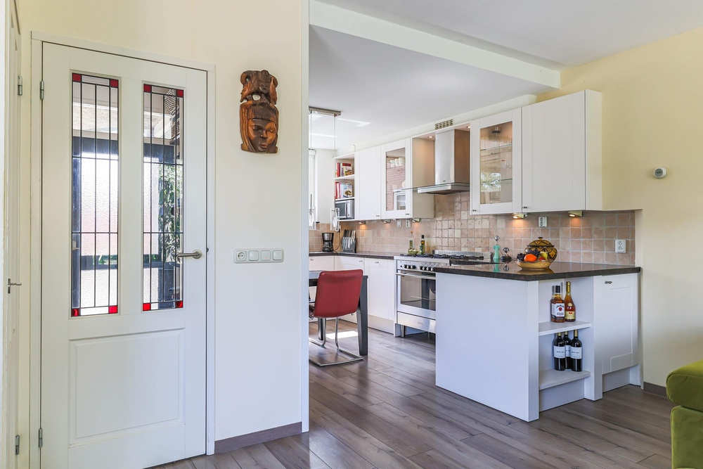 Het winkelcentrum en de bushalte naast de deur, ideaal! Onze dochters hebben een heerlijke jeugd gehad in deze groene wijk en konden al vrij snel zelfstandig naar school vanwege de gunstige ligging van de woning aan het fietspad.