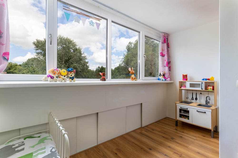 Deze nette tussenwoning beschikt over maar liefst 5 slaapkamers op de twee verdiepingen. In 2016 is er een groot dakkapel geplaatst aan de achterzijde van de woning. Dit heeft geresulteerd in een mooie extra slaapkamer. Op de begane grond is een lichte woonkamer aanwezig met een open keuken. De woning is gelegen in een groene en kindvriendelijke omgeving, op loopafstand van diverse voorzieningen en een goede verbinding met het openbaar vervoer.