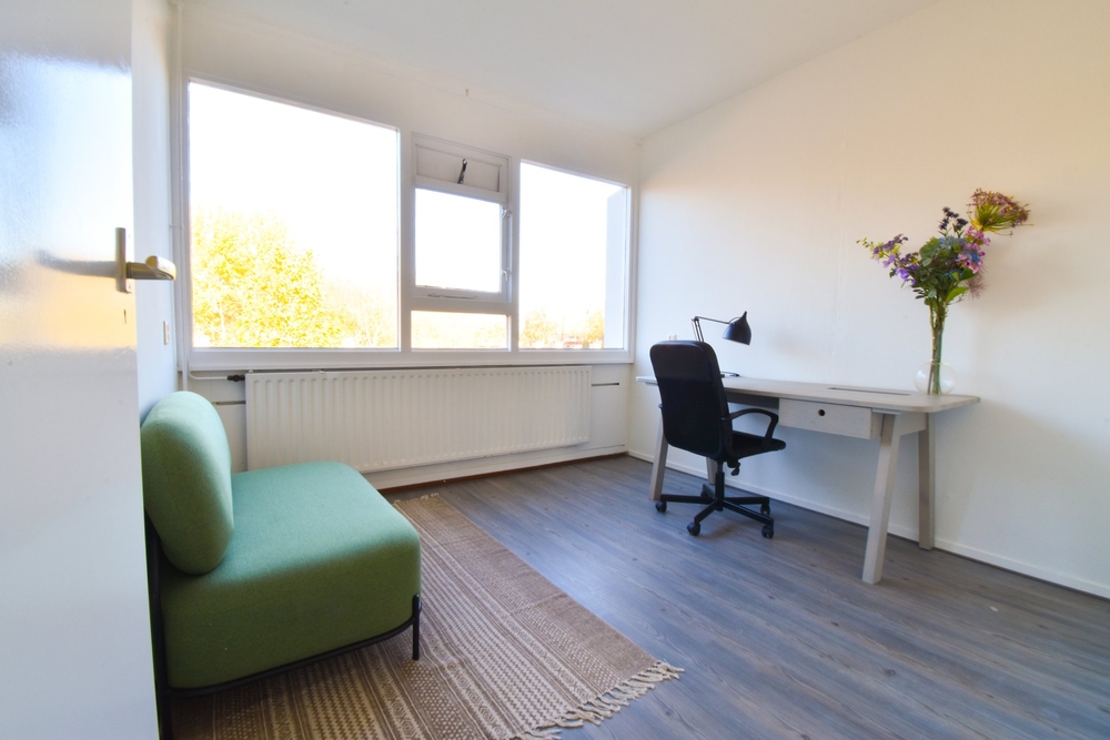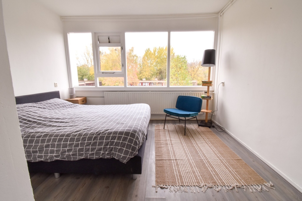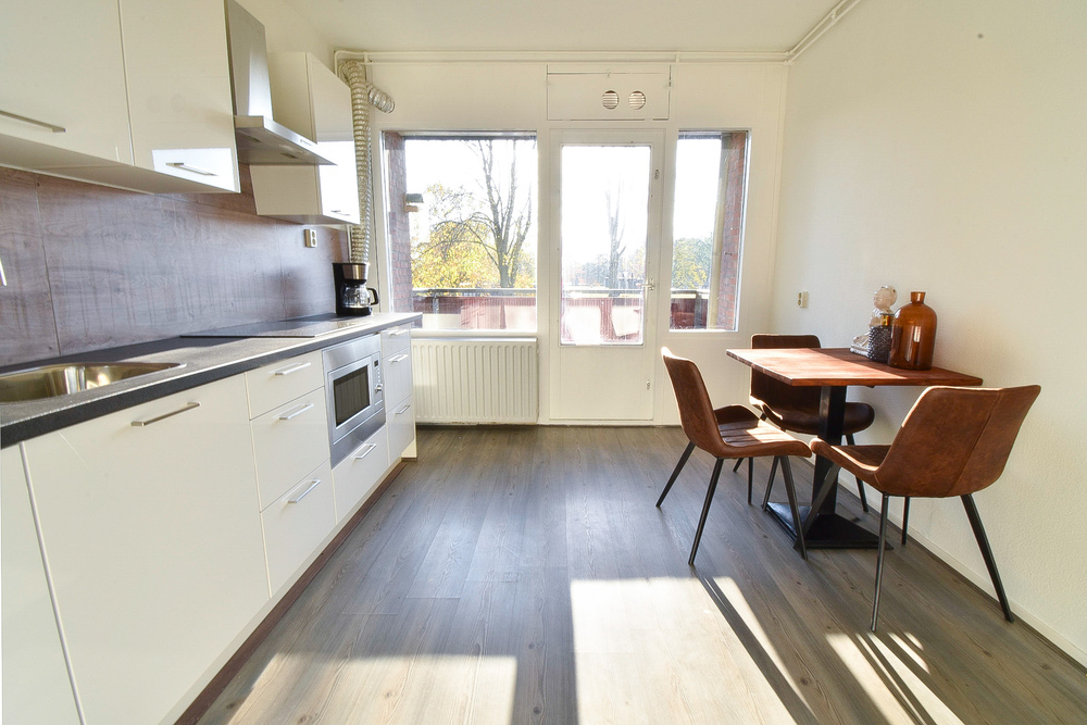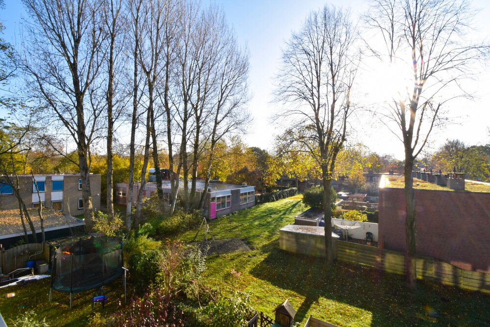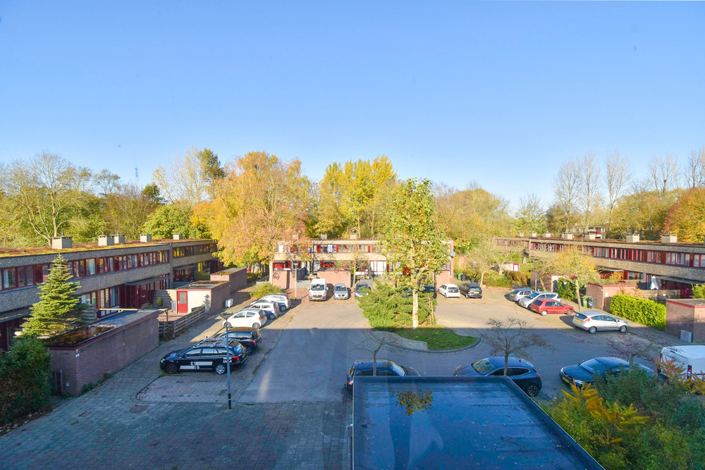 Royaal (grootste type), licht, eenvoudig appartement, met ruime woonkeuken voorzien van nieuwe inrichting en inbouwapparatuur, een ruim en zonnig balkon, drie slaapkamers en fietsenberging op de begane grond. In een kleinschalig complex, aan de voorzijde gelegen aan een pleintje en achter aan een groenstrook. Bovenste woonlaag, dus geen bovenburen. Groene omgeving en op korte afstand van bushalte, school en groot overdekt winkelcentrum. Gezonde VvE met een lage bijdrage: € 117,- per maand.