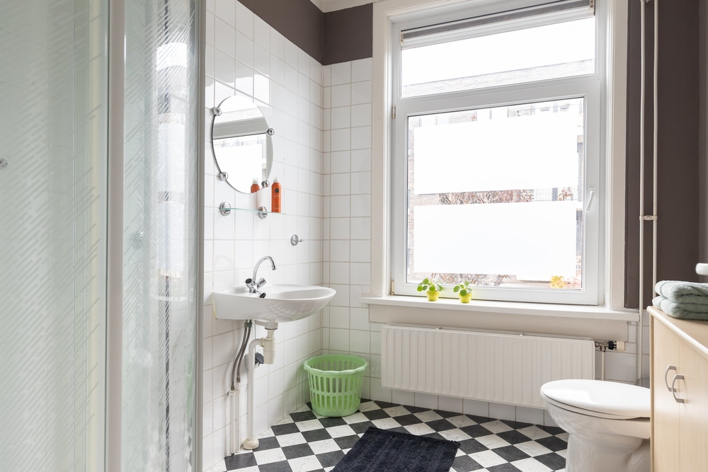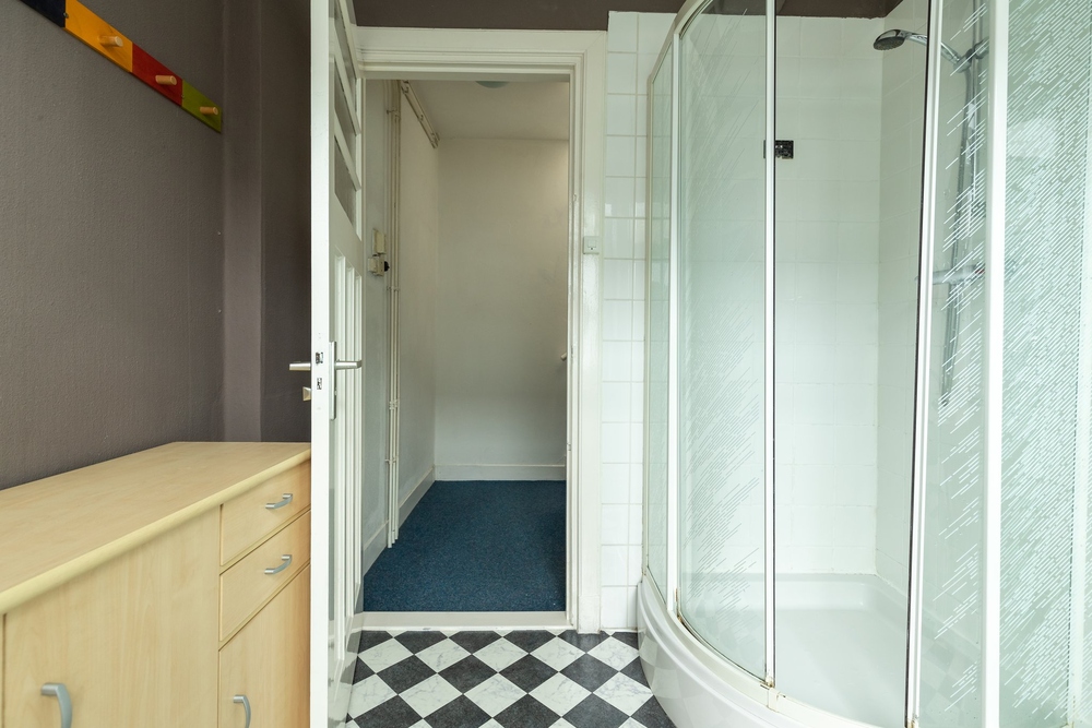 Eerste verdieping: Overloop met toegang tot de badkamer. De badkamer van ca. 6,9m² is voorzien van een douche, toilet en wastafel.