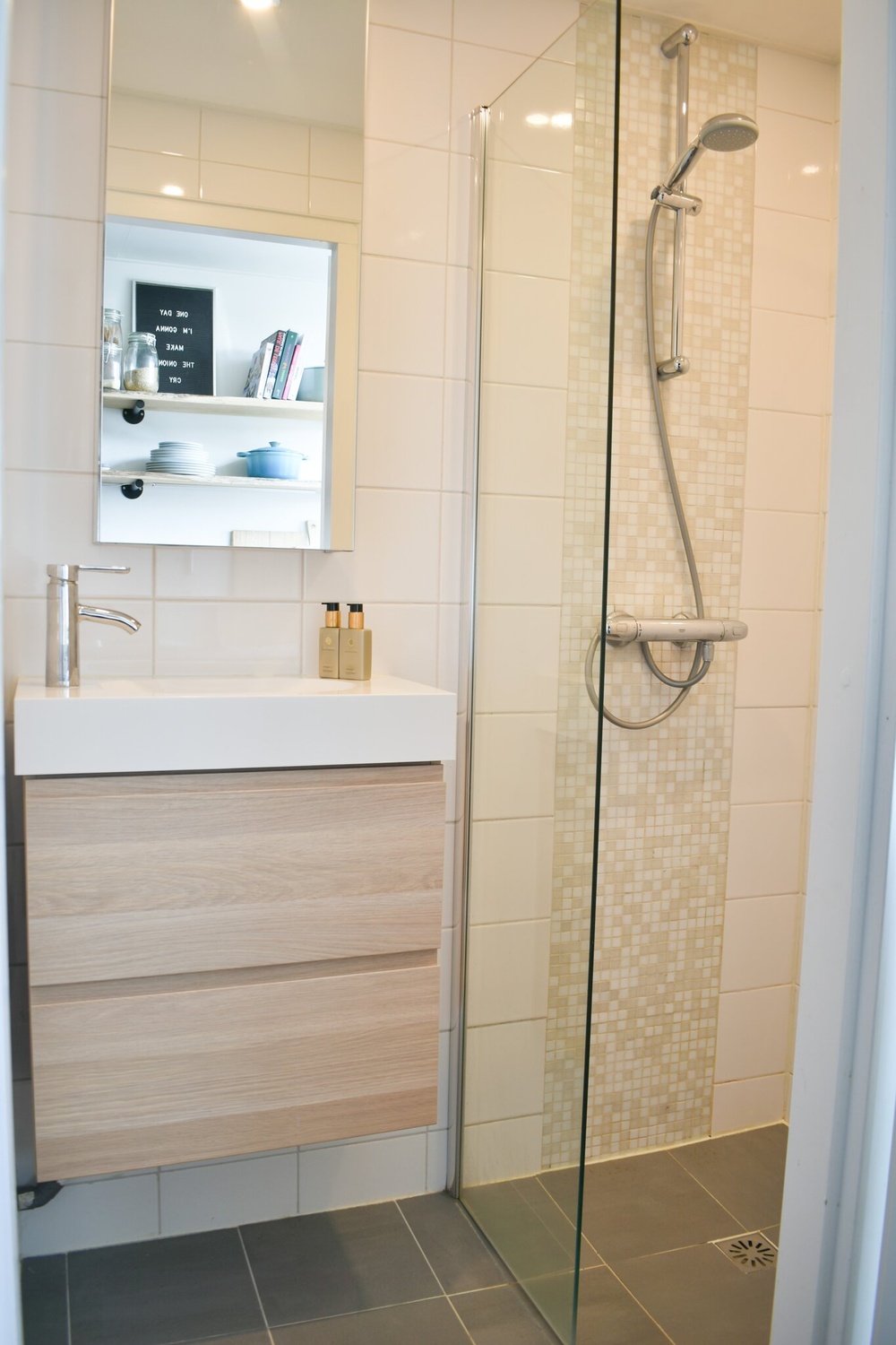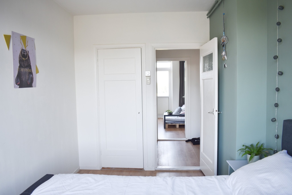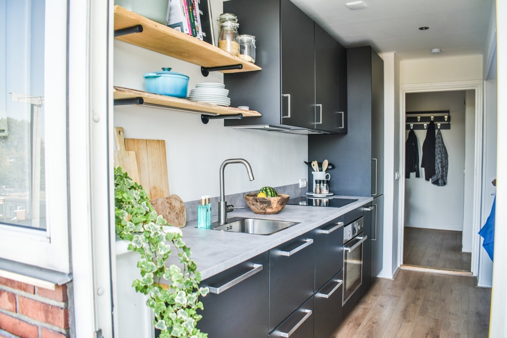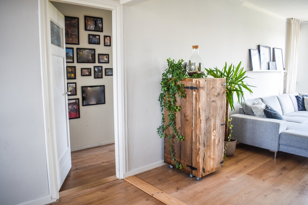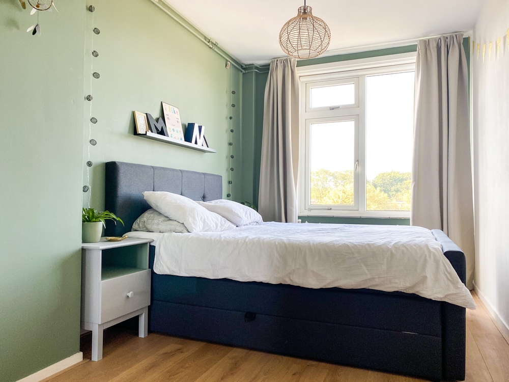 Als we familie en vrienden over de vloer hebben, dan staan ze standaard het eerste kwartier voor het raam. Wesnappen ze wel, het uitzicht is namelijk fantastisch. Van grote binnenvaartschepen tot kano's, alles passeert de sluis.En als de zon op het water schittert krijg je direct een vakantiegevoel. Er wordt wel vaker een woning aan de Florakadeverkocht waarbij het uitzicht wordt geprezen, maar wij durven te stellen dat ons plekje het allerbeste is. De buurt zelfheeft daarnaast van alles te bieden: supermarkt en bouwmarkt op loopafstand, met de auto binnen een paar minutenop de ring, sporten bij het water of even een kletspraatje met een van eerste bewoners van het complex. Gelukkigverraadt de top van de Martinitoren de nabijheid van het centrum, want anders zou je niet denken dat je eigenlijkmidden in de stad woont. Je fietst of loopt zo naar het centrum toe. Dwars door de Oosterpark heen en langs het waterterug, of andersom natuurlijk. Het appartement zelf is de afgelopen jaren volledig verbouwd en vernieuwd. Een nieuwebadkamer en toilet, strak stucwerk, een moderne keuken en nieuwe meterkast en elektra om de keuken te kunnenvoorzien van alle gemakken. Er is daarnaast geen muur in het huis die geen likje verf heeft gekregen. Maar wij zijn toeaan een nieuwe stap. En ondanks de fantastische plek en alle vernieuwingen besloten we toch die stap te nemen. Wehopen dat de nieuwe bewoner van deze woning net zo gelukkig van het huis en het uitzicht wordt als wij zijn.