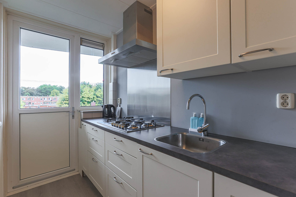Entree met meterkast, toilet en toegang tot de woonkamer en de keuken.De ruime sfeervolle woonkamer met prachtig uitzicht is ca. 39 m² groot en bestaat uit een voor- en achterkamer. De gesloten moderne keuken is ca. 9 m² en is voorzien van inbouwapparatuur. Hier bevindt zich tevens een kast met schuifdeur met wasmachineopstelling en de CV ketel. Verder toegang tot de moderne badkamer van ca. 2 m² met inloopdouche en een wastafelmeubel. Vanuit de keuken is er toegang naar het balkon aan de achterzijde. Vanuit de woonkamer is de tweede hal te bereiken met toegang tot de 2 slaapkamers van ca. 12 m² en 10 m² groot. Vanuit de kleinste slaapkamer is er nog toegang tot het balkon aan de voorzijde van de woning. Door de gehele woning heen bevinden zich vaste inbouwkasten.