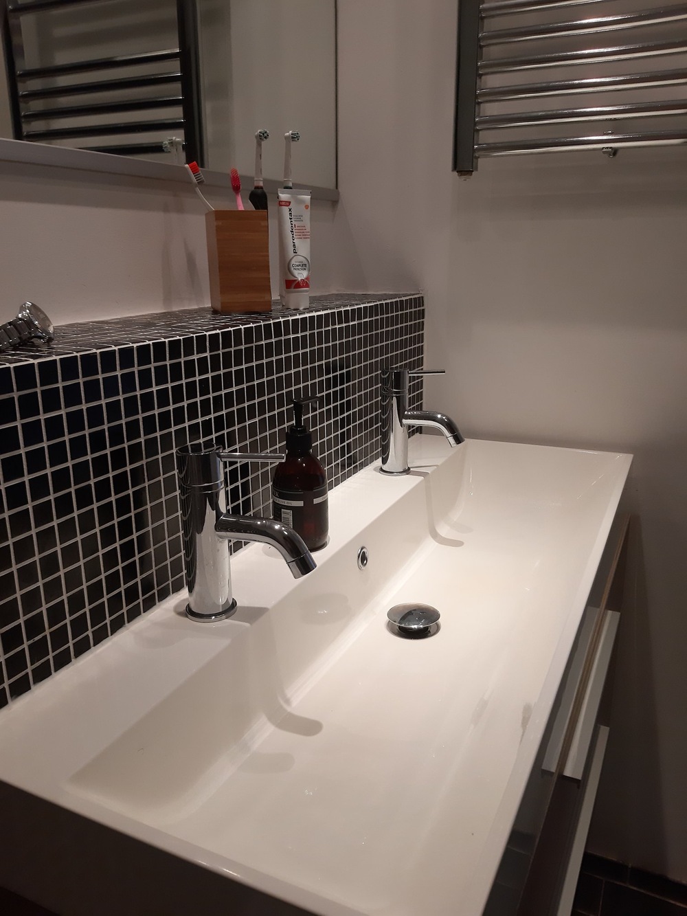 Indeling eerste verdieping: overloop.Drie slaapkamers van 12, 8 en 8 m2. Moderne en compacte badkamer (ca. 4 m2) met douche, wastafelmeubel en tweede toilet.