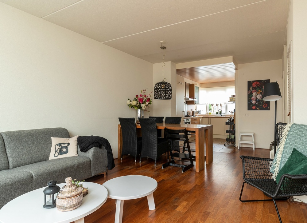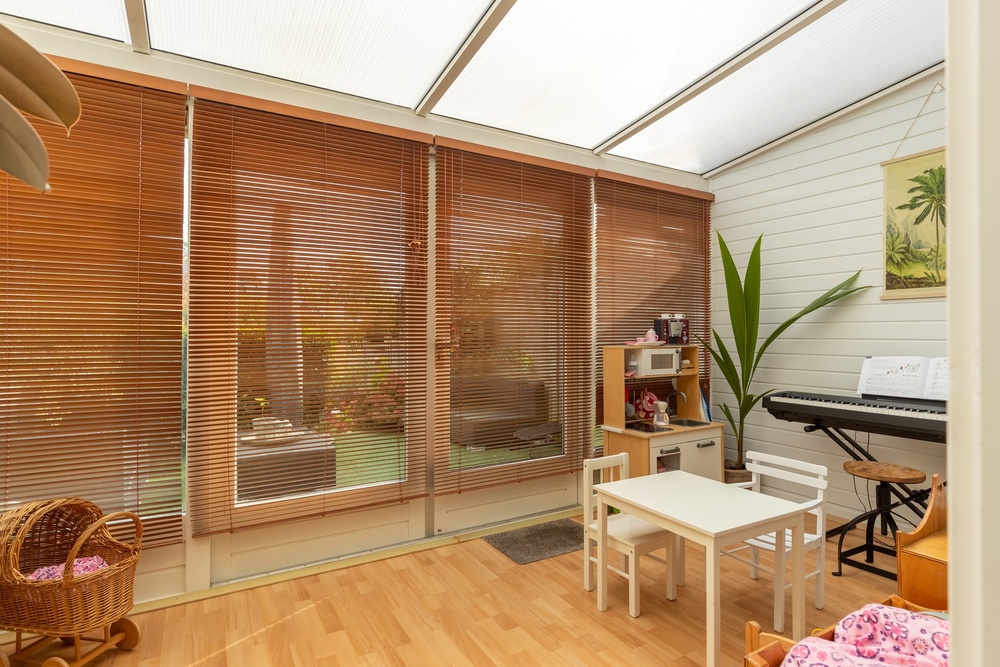 Indeling begane grond: Entree/hal (ca. 4 m2) met meterkast, garderobehoek en toegang tot de woonkamer. Tuingerichte woonkamer (ca. 26 m2) met open keuken (ca. 7 m2), parketvloer, inloopkast en doorloop naar de serre. Open keuken aan de voorzijde, voorzien van inbouwapparatuur zoals: koel-vriescombinatie (2018), vaatwasser, kookplaat en oven. Gezellige serre (ca. 11 m2) direct achter de woonkamer met lichtdoorlatend dak en deur naar de tuin.