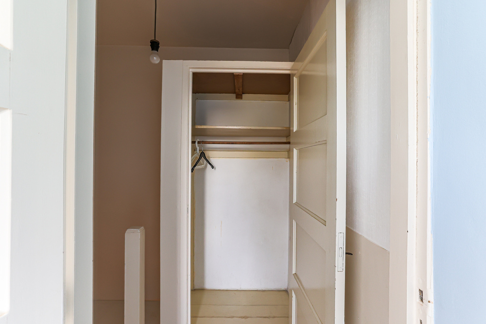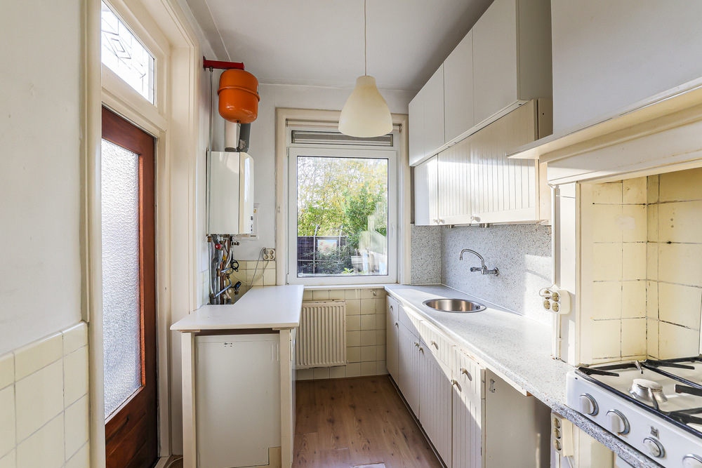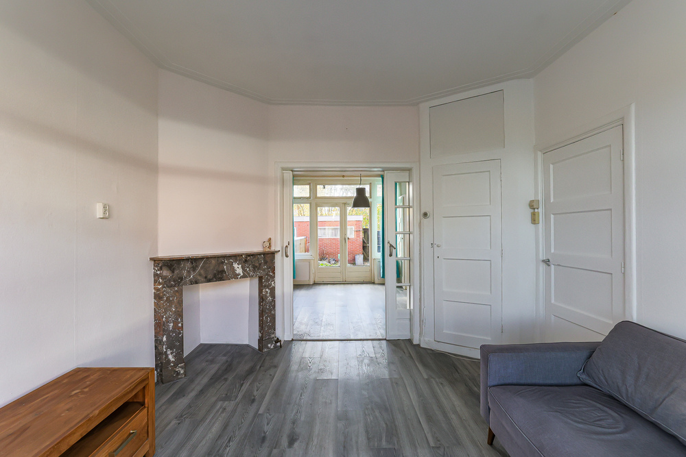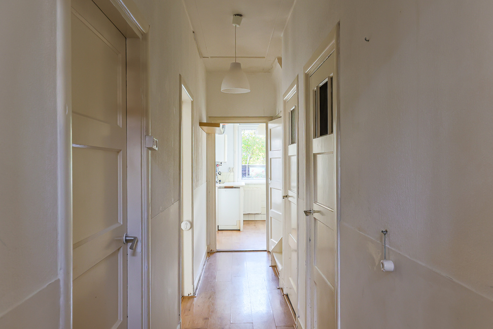 Begane grond: entree/tochtportaal, hal, mooie woonkamer-en-suite met een voorkamer en erker (16 m2) en een achterkamer (14 m2) met openslaande tuindeuren, kelderkast, toilet, doucheruimte met wastafel en aan de achterzijde de keuken.Eerste verdieping: overloop en slaapkamer (6 m2) met een vaste kast.Tweede verdieping: overloop met inbouwkast, slaapkamer (6m2)
