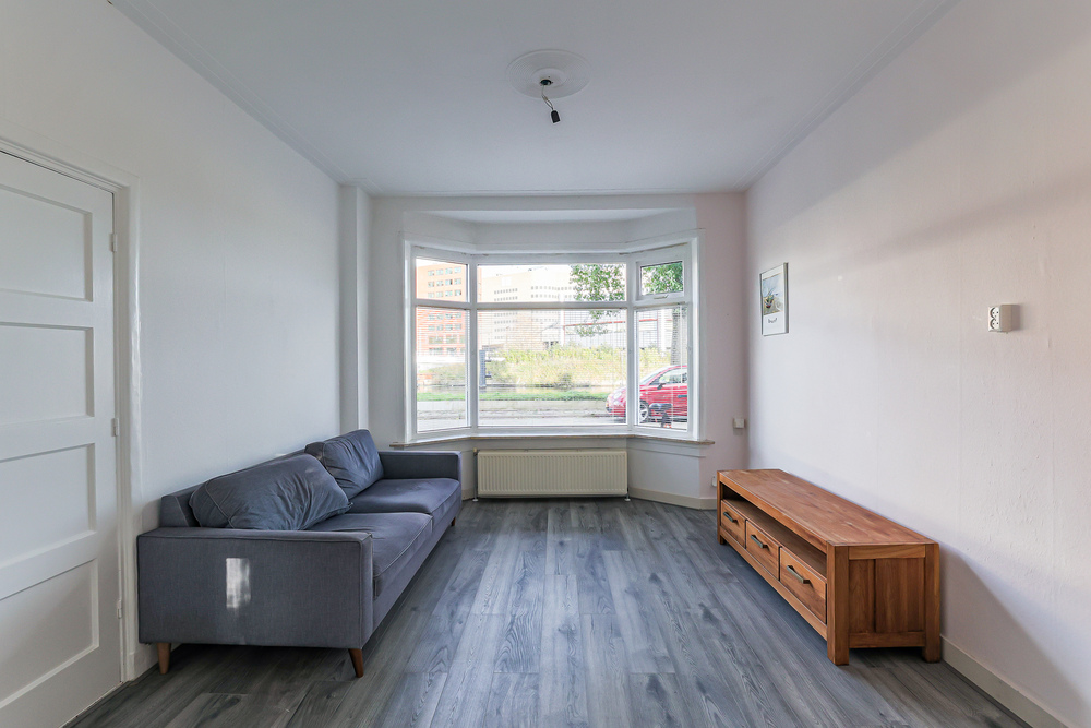 Leuk gelegen (aan water) jaren dertig benedenwoning (torenbouw) met royale achtertuin op het zuidwesten.