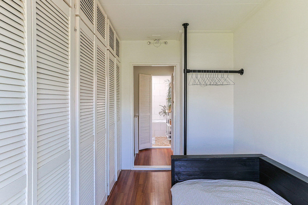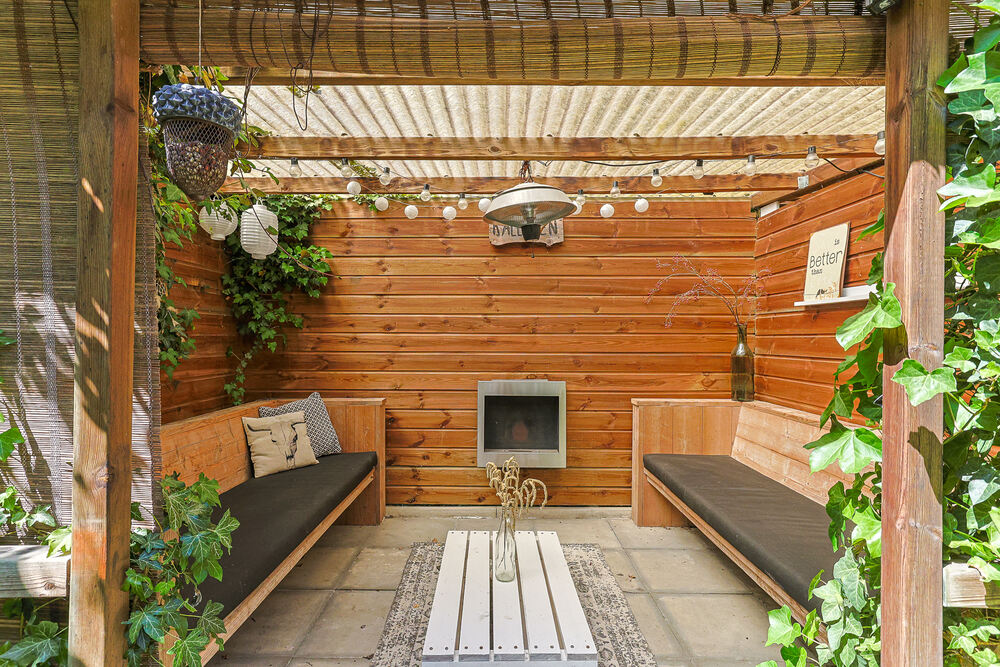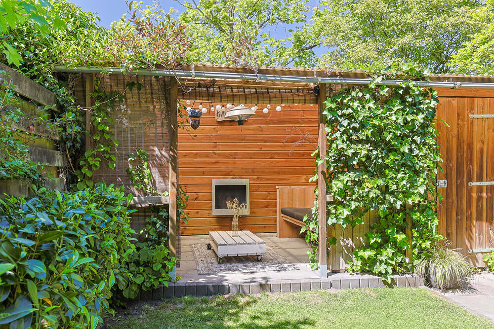 Leuke en flinke stadstuin (ca. 50 m2) met zon- en schaduwplekken, o.a. onder de gezellige veranda. Vanuit de tuin zijn de berging en de achterom bereikbaar.