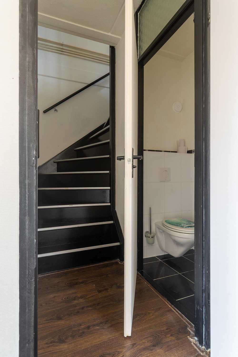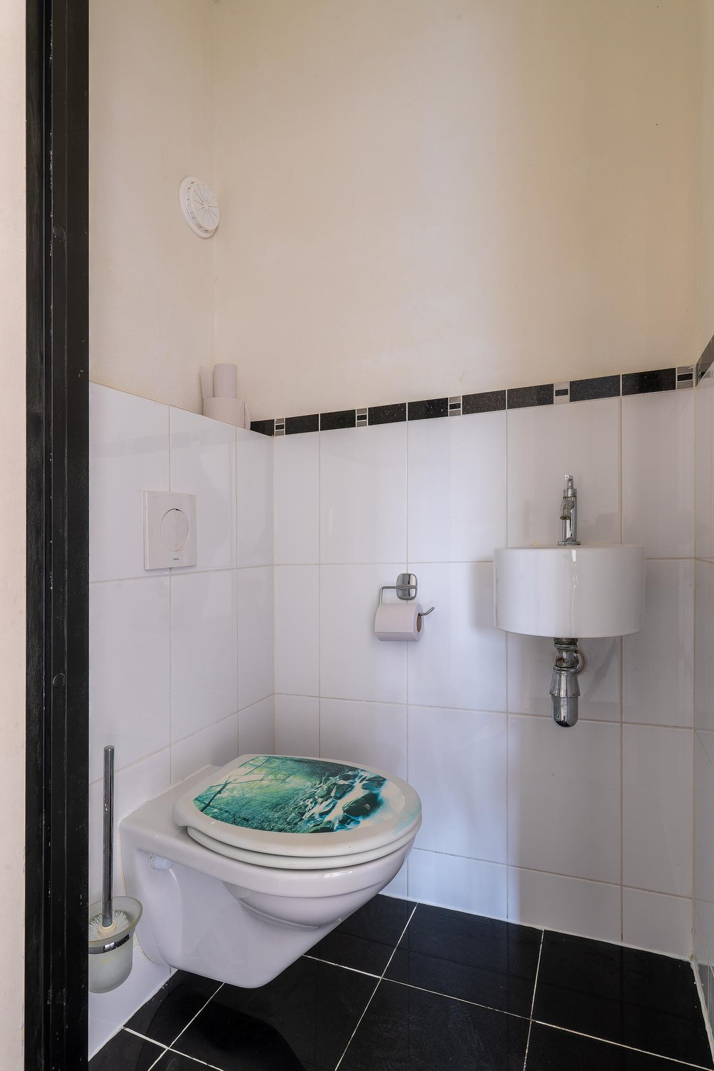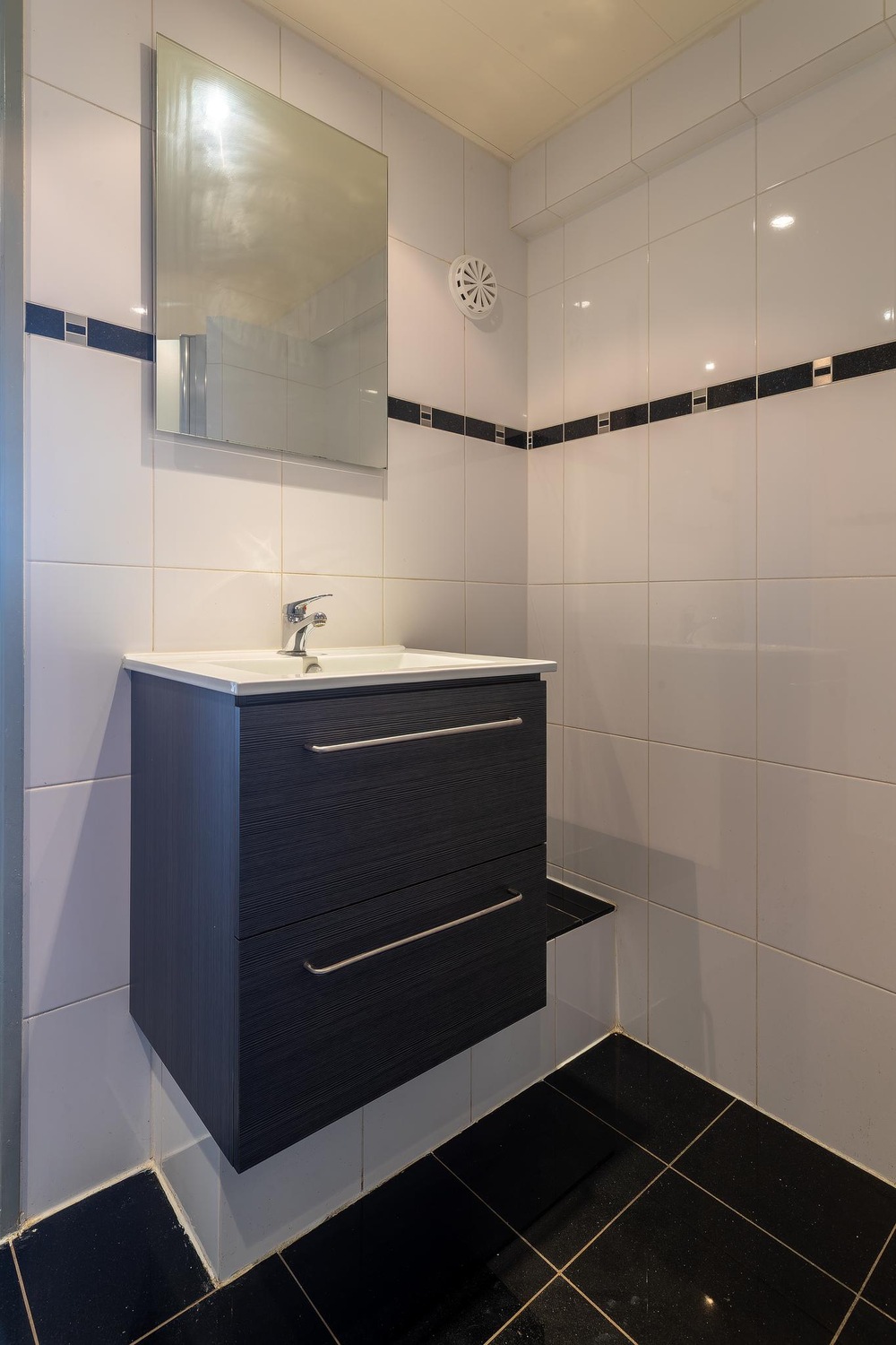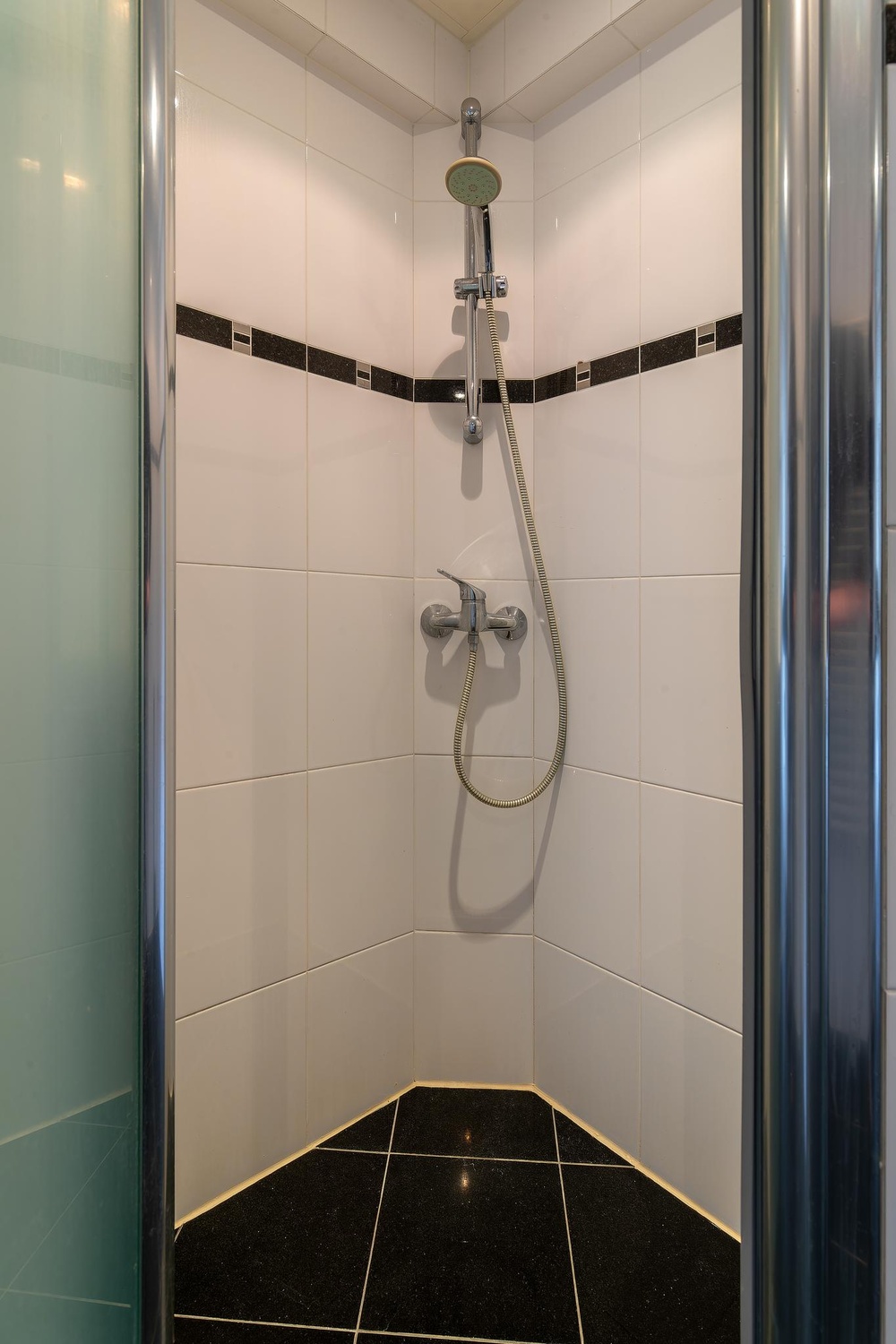 Eerste verdieping: overloop met toegang tot de twee slaapkamers en de badkamer. De grootste slaapkamer bevindt zich aan de achterzijde van de woning en is ca. 13 m² groot. De twee slaapkamer is ca. 11 m² groot. De badkamer is voorzien van een inloopdouche, wastafelmeubel en een aansluiting voor de wasmachine. De c.v. ketel en de mechanische installatie box bevinden zich op de overloop.