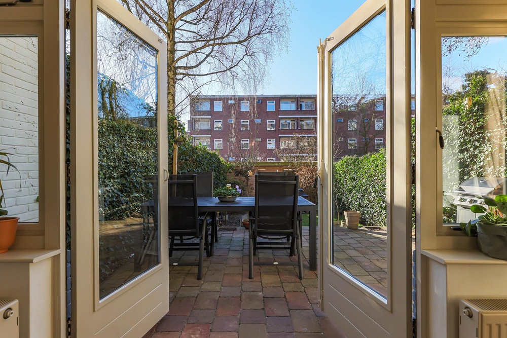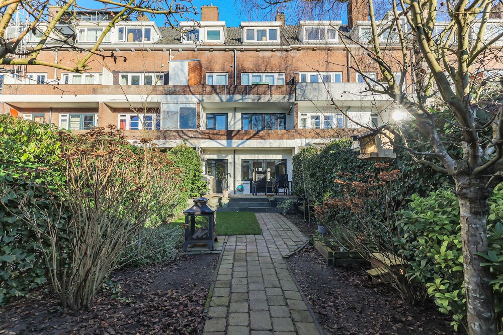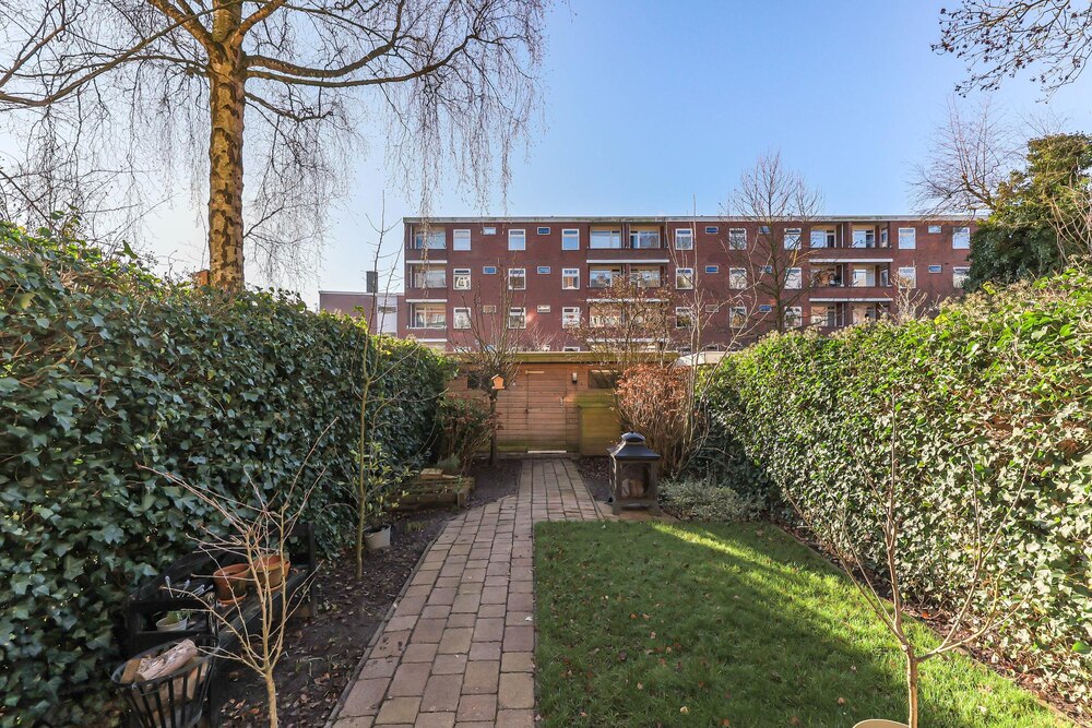 De diepe tuin (ca. 15 x 5,6 meter, deels verdiept aangelegd) is zonnig, op het zuiden gelegen en uitermate verzorgd. Aan de achtergevel ligt een mooi terras onder het balkon.De ruime (ca. 20 m2, geschikt voor motorstalling) houten berging is in 2008 geplaatst. Achterom is de woning goed bereikbaar.