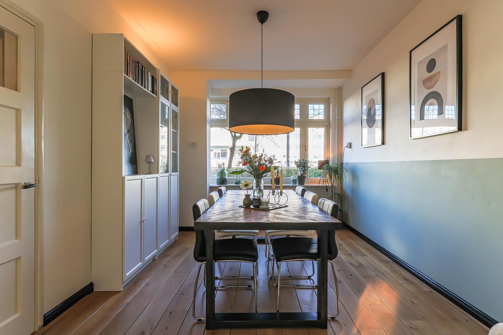 Op loopafstand van centraal station, Westerhaven en hartje centrum gelegen, karakteristieke en uitermate nette twee-laagse benedenwoning met prachtige kamer en suite, drie slaapkamers en moderne badkamer op de verdieping en een royale zonnige tuin op het zuiden met grote houten berging en achterom. Volop karakter: suite deuren, schouwen, paneeldeuren en fraai glas-in-lood. De woning is volledig voorzien van dubbel glas en is keurig bewoond. Uitvalswegen A7 en A28 op 5 autominuten.