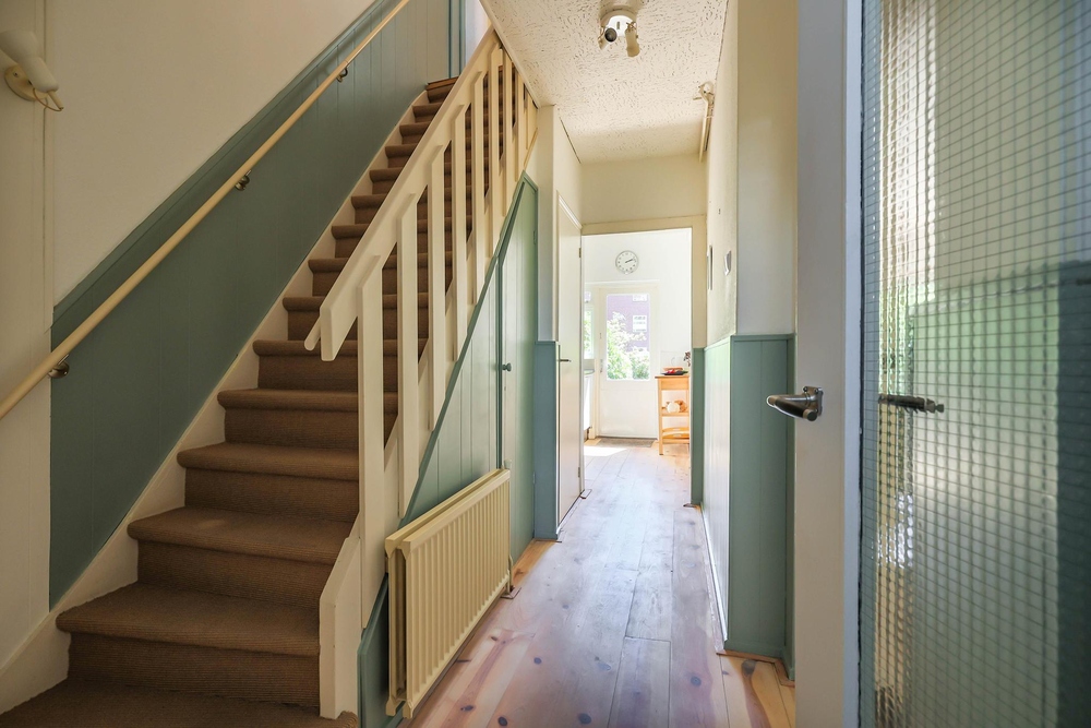 Prachtig centraal gelegen royale jaren-dertig-benedenwoning, bestaande uit twee woonlagen, met een flinke schuur (22 m2, ideaal voor de motorrijder en- of klusser) in een diepe tuin (ruim 100 m2) op het zuiden met achterom.