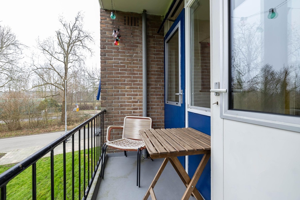 Begane grond: via portiek met de trap naar de galerij. Tweede woonlaag: Entree met meterkast en toegang tot alle vertrekken. Ruime lichte woonkamer van 33 m² met deur naar het balkon. De woonkamer bestaat van origine uit een voor- en achterkamer, hierdoor is het op eenvoudige wijze mogelijk om hier weer een extra kamer te creëren als bijvoorbeeld derde slaapkamer. Het zonnige balkon ligt op het Westen, hier heb je mooi en rustgevend uitzicht op een grasveld en kun je heerlijk ontspannen. De dichte keuken is 7 m² en is in 2020 vernieuwd, voorzien van inbouwapparatuur en een inductiekookplaat, hier bevindt zich tevens de wasmachine aansluiting. De tweede slaapkamers zijn beide 8 m², waarvan een van de slaapkamers tevens toegang biedt tot het balkon. Separaat toilet. De badkamer is 3 m² en is in 2022 vernieuwd, voorzien van een inloopdouche en een breed wastafelmeubel. De inpandige berging bevindt zich in het souterrain van het complex en is 8 m².