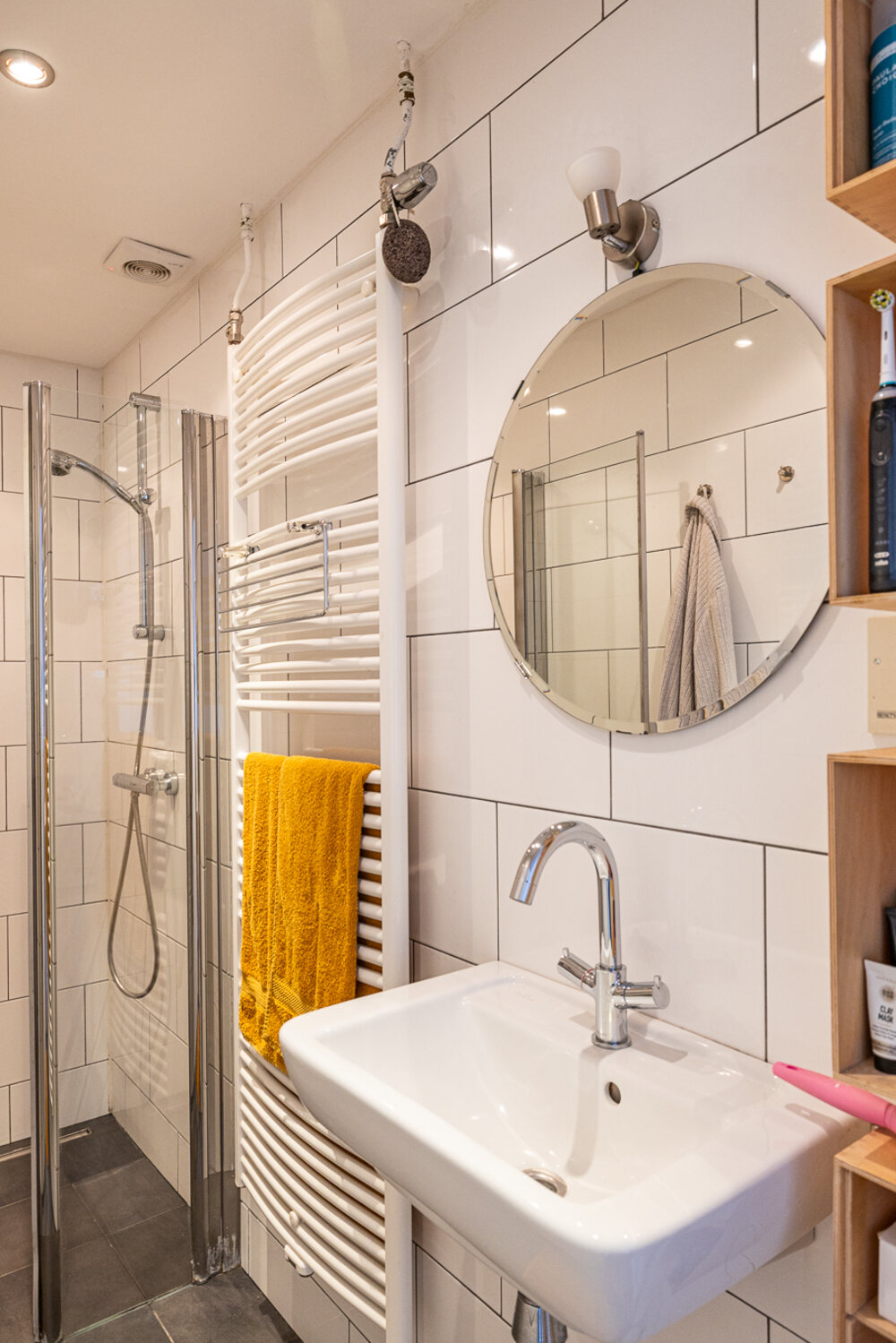 Tweede etage/woonverdieping: ruime overloop/hal met toilet, bergkast (CV ketel en wasmachine aansluiting) en toegang tot alle vertrekken. Prachtige en unieke woonkamer (ca. 43 m2) met hoog plafond, veel raamoppervlak en aan de kopgevel een gezellig balkon (ca. 3 m2). Voorzien van nette laminaatvloer, een schouw, handige inloopkast en HR ++ glas. Gesloten nette keuken (ca. 7 m2) met bergruimte, losse apparatuur en deur naar het tweede achtergelegen balkon (ca. 5 m2). Drie nette slaapkamers van ca. 11, 9 en 9m², alle voorzien van HR++ glas en een nette laminaatvloer.De keurige badkamer is voorzien van inloopdouche, vaste wastafel en een handdoekradiator.