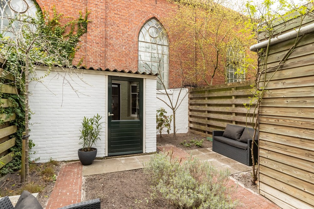 Bij de lange zwoele zomeravonden komt er zacht licht uit de glas-in-lood ramen van het kerkje achter het huis, wat een heelidyllisch plaatje geeft.De aangename sfeer achter het huis tref je ook aan de voorkant aan.De grote ramen en de karakteristieke glas-in-lood raampjes zorgen voor veel lichtinval.De prachtige rozenstruik bloeit een paar keer per jaar en past bij de uitstraling van het huis.
