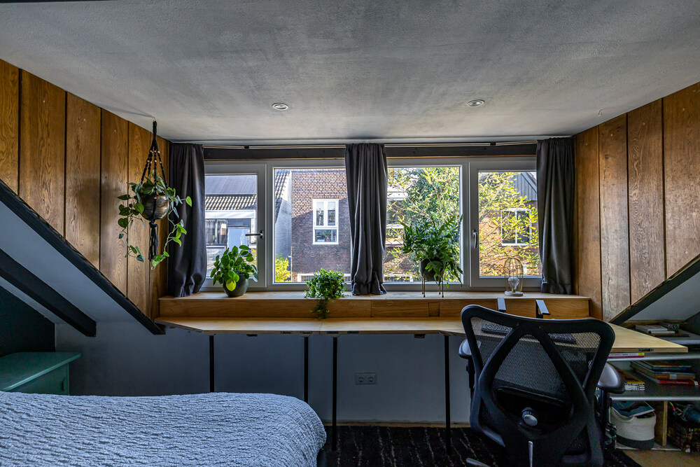 Begane grond: entree/gang met toegang tot alle vertrekken. Lichte woonkamer met sfeer (ca. 29 m2) met hoog plafond, glas-in-loodramen en openslaande deuren naar de tuin. Aan de achterzijde een nette, moderne open keuken (2012, meeste apparatuur onlangs vervangen) met keukenblok in hoekopstelling. In de uitbouw is een keurige badkamer aangebracht (in 2012) met een verzonken douchebad, toilet en wastafelmeubel, geheel in lichte kleurstelling.Eerste verdieping: overloop met wasmachinekast en drie, echt prachtige, slaapkamers (7, 8 en 12 m2). De grote slaapkamer heeft inbouwkasten. De twee kleine slaapkamers hebben op een innovatieve wijze beide een bedstee gerealiseerd. Praktisch, maar ook heel leuk!