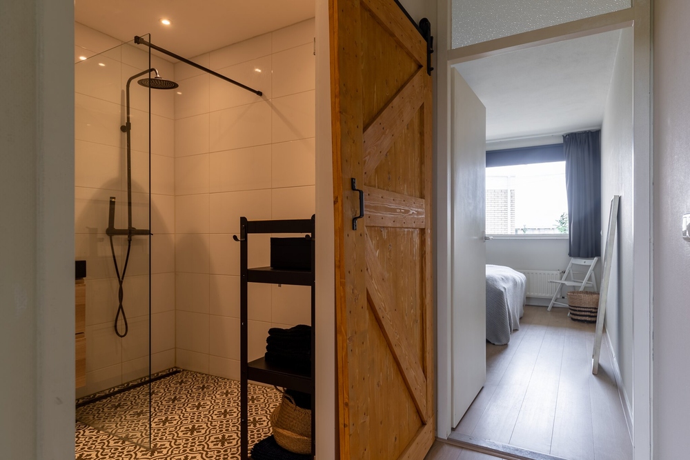 Zesde etage: entree met meterkast. Toegang tot de woonkamer en de keuken. De eenvoudige keuken is ca. 10 m² groot en beschikt over een aansluiting voor de wasmachine en een ruime bergkast. De lichte woonkamer met eetkamer gedeelte is in totaal ca. 39 m² groot. Eventueel is het eetkamer deel gemakkelijk om te zetten tot een derde slaapkamer. Vanuit de woonkamer kom je in een kleine hal met toegang tot de twee slaapkamers, badkamer en een afzonderlijk toilet. De grootste slaapkamer is ca. 14 m² groot. De tweede slaapkamer is ca. 12 m² groot. De badkamer van ca. 4 m² groot is in 2019 vernieuwd en beschikt over een inloopdouche en een dubbele wastafel. Ook het afzonderlijk toilet is vernieuwd.