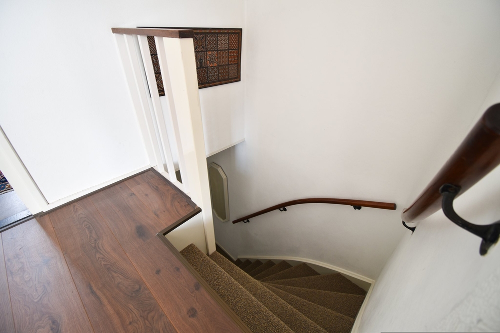 Begane grond: entree/hal met meterkast en via opstapje te bereiken toilet en trapopgang; Woonkamer (45 m2) en toegang tot kleine kelder en keukenblok aan e achterzijde voorzien van enige inbouwapparatuur. Bijkeuken met cv en wasmachine met deur naar de zonnige tuin.Eerste verdieping: overloop, 3 slaapkamers (12, 11 en 5 m2). De kleinste met deur naar het aan de voorzijde gelegen balkon. Eenvoudige douche met wastafelmeubel. Tweede verdieping: via vaste trap te bereiken, flinke overloop, bergruimte en nog eens 2 slaapkamers (15 en 6 m2).