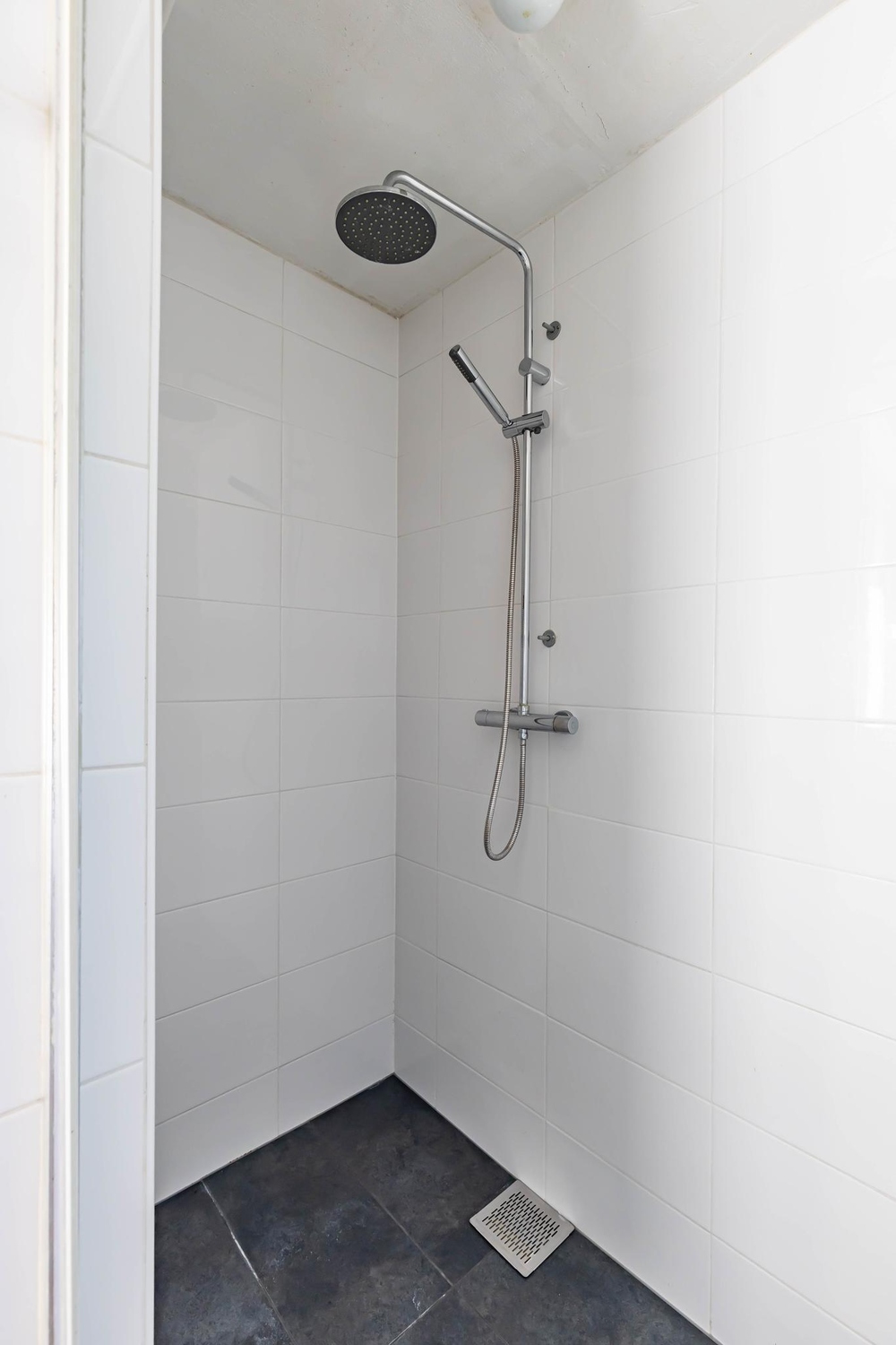 Trappenopgang. Tweede verdieping: entree, meterkast, toilet, keuken uit 2012 (7 m2) en doucheruimte (2 m2) uit 2012, drie slaapkamers (11, 5 en 5 m2), woonkamer van 16m2. Er is toegang tot de balkons (7 en 3 m2) via de woonkamer en de keuken. Het washok met cv-ketel zijn via de keuken te bereiken.Vrijstaande stenen berging(6 m2) gelegen achter de woning.