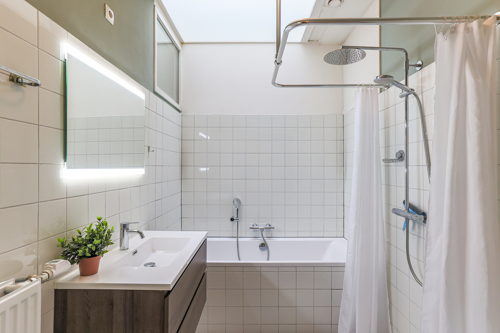 Het appartement heeft aan de achterzijde een overdekt balkon (zuid) van ruim 7 m2 over de volle breedte van het huis met uitzicht o.a. op de top van de Martinitoren. Een oase van rust, en dat midden in het stadshart!