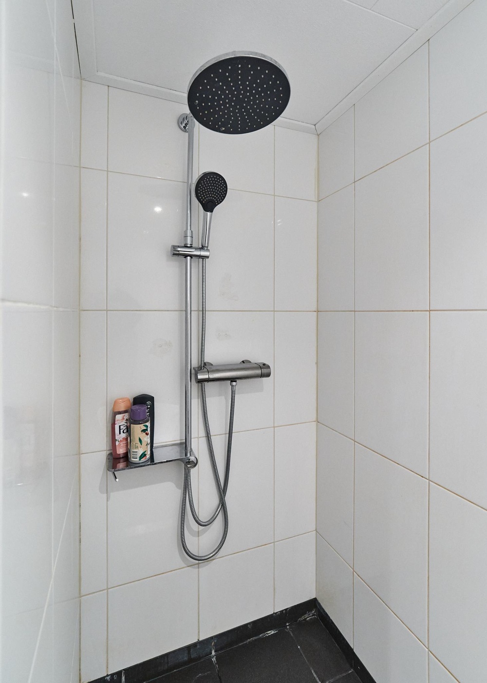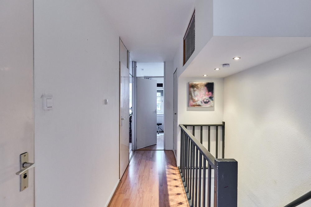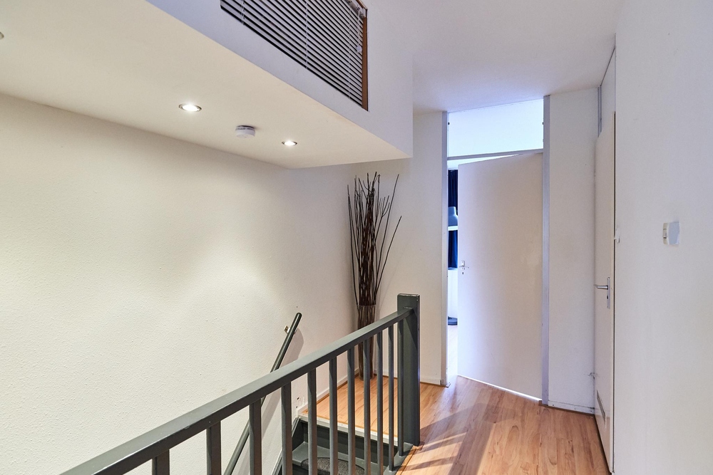 Verdieping: overloop met ruime en praktische inloopberging (ca. 5 m2, CV ketel 2011 in eigendom en de wasmachine aansluiting)Drie slaapkamers van ca. 14, 10 en 5 m², allen voorzien van laminaat.Gemoderniseerde badkamer (ca. 5 m²) met inloopdouche, hangend toilet, wastafelmeubel en handdoekradiator.