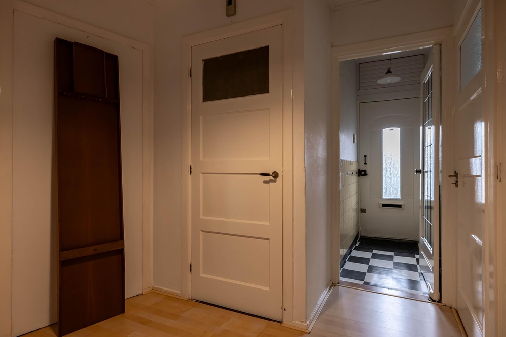 Via de entree/tochtportaal kom je binnen in de ruime hal. Hier bevindt zich een grote kelderkast voor de nodige opbergruimte en de meterkast. De gezellige en sfeervolle woonkamer is samen met de halfopen keuken ca. 31 m². Via openslaande deuren kom je vanuit de woonkamer in de achtertuin. De keuken is netjes en is voorzien van inbouwapparatuur, ook vanuit de keuken is de achtertuin te bereiken. De slaapkamer aan de voorzijde is ca 7 m², hier bevindt zich tevens de wasmachine-opstelling. De slaapkamer aan de achterzijde is ca 10 m², hier bevindt zich een kast met de cv-ketel. In deze slaapkamer is een wastafel aanwezig en is er toegang tot de douchecabine. De mogelijkheden om een badkamer te creëren en de woning aan de achterzijde uit te bouwen zijn aanwezig, waardoor je de woning helemaal naar eigen wens zou kunnen aanpassen.