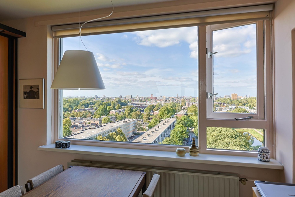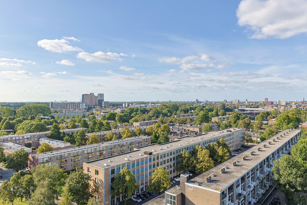 Appartement op de bovenste etage met adembenemend uitzicht! De woning is gelegen in de wijk de Wijert, bevindt zich op de dertiende woonlaag en heeft een ruime, lichte doorzonwoonkamer, dichte keuken en badkamer, een slaapkamer en groot balkon op Zuid, waar je heerlijk kunt genieten van het prachtige uitzicht en van de zon!