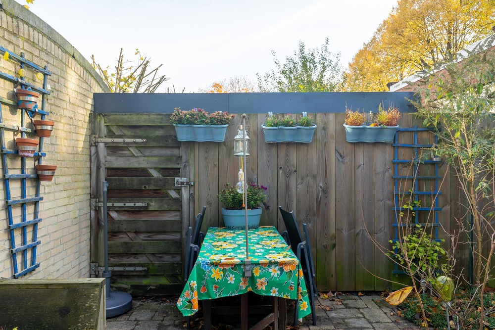 entree, hal, wasruimte, living van ca. 35 m2 met aan de voorzijde de sfeervolle woonkamer (22 m2) en aan de achterzijde een semi-open woonkeuken (13 m2). Het keukenblok dateert van 2002 en is v.v. enige inbouwapparatuur. In de uitbouw een tussenhal met deur naar de besloten fijne tuin, badkamer (4m2) met douche en toilet en de eerste slaapkamer (11 m2).Eerste verdieping: royale slaapkamer met dakkapel (2012) en kastruimte. Netto oppervlakte bedraagt 21 m2.