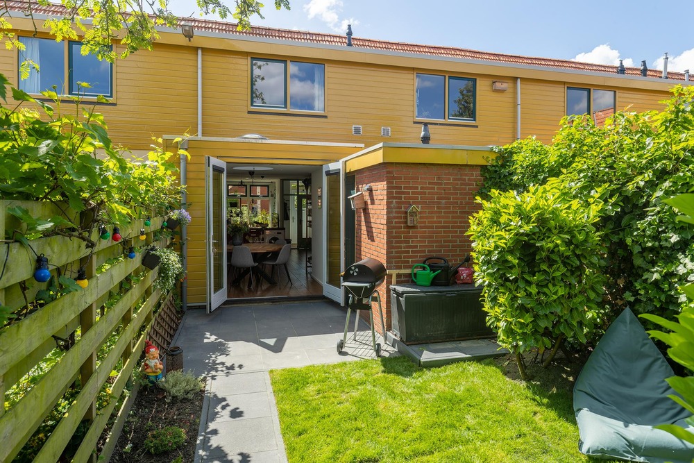 De achtertuin is zonnig en fraai aangelegd (ca. 8,5 meter diep en 4,3 meter breed), via een achterom bereikbaar.Ruime voortuin op de middag- en avondzon.