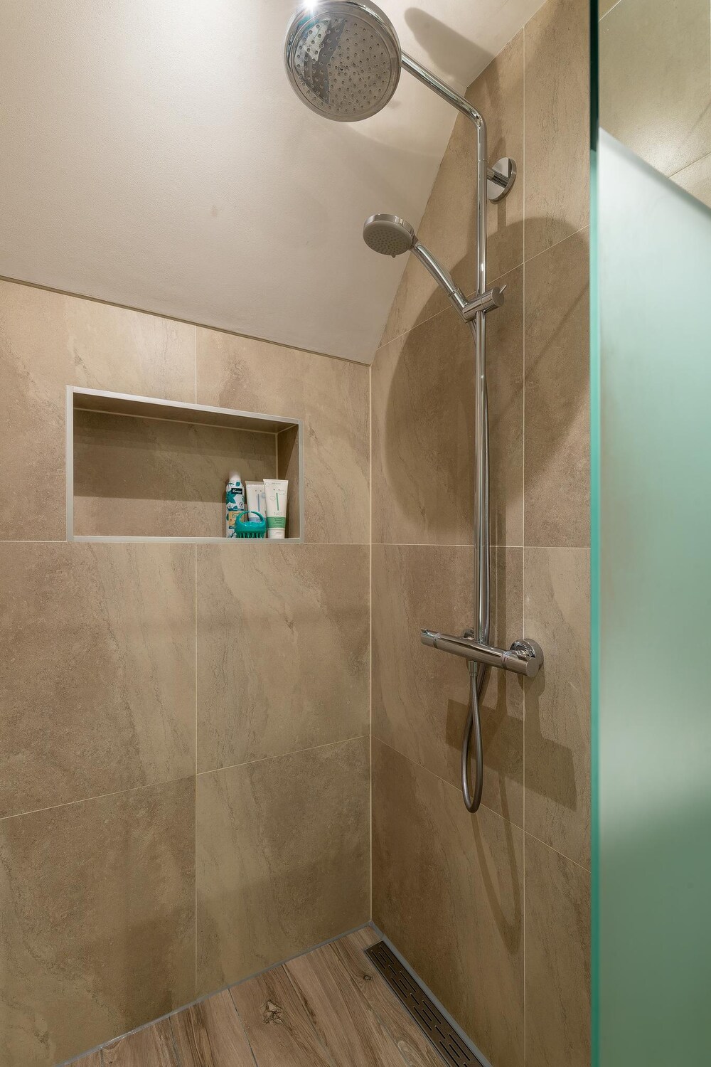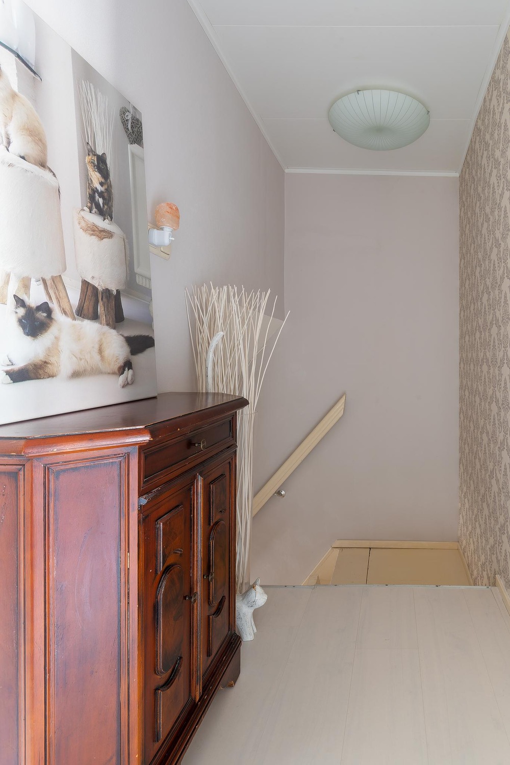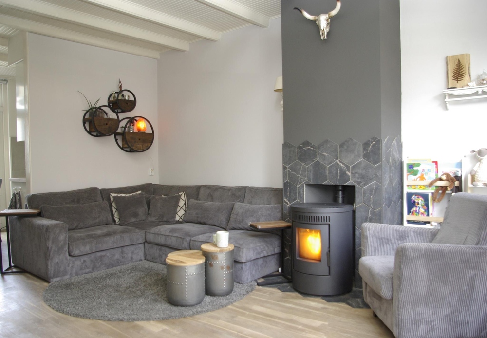Begane grond: Entree, kleine hal met trapopgang naar verdieping, meterkast en doorloop naar de woonkamer. Sfeervolle doorzonkamer (ca. 21 m2) met mooie parketvloer, een balkenplafond en een schouw met pellet kachel.Nette open keuken (ca. 11 m2) met inbouwapparatuur (inductie kookplaat, afzuigkap, een afwasmachine en een hete lucht oven).Moderne badkamer (ca. 4 m2) met ruime inloopdouche, wastafelmeubel en separaat hangend toilet. Verzorgde en ruime bijkeuken (ca. 8 m2) met witgoedaansluiting, CV ketel (2021 eigendom) en loopdeur naar de tuin.