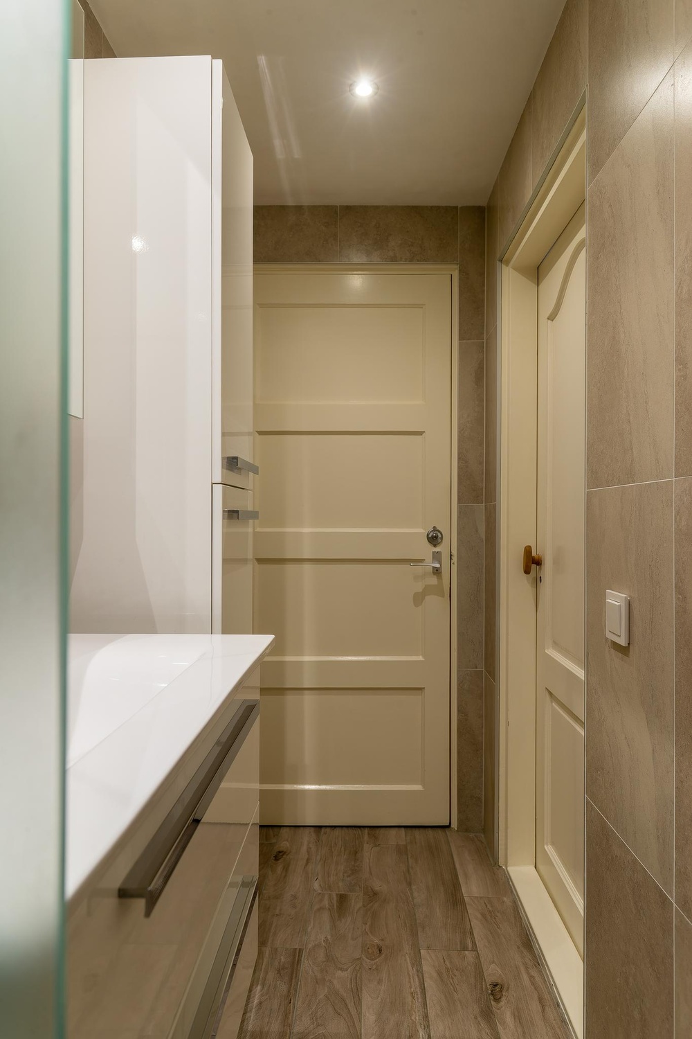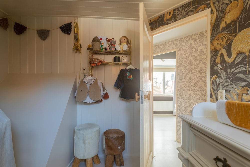 1e verdieping : overloopDrie nette slaapkamers van 6, 7 en 12 m2. De grote slaapkamer kijkt uit op het dakterras en de tuin.