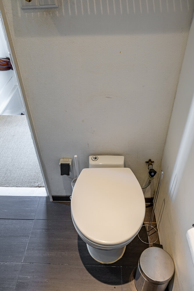Op de tweede verdieping vindt u een overloop met vaste kast en toegang twee ruime slaapkamers van ca. 13 en 15 m². Een kijkt uit op op het rustige groen aan de achterzijde. De grootste slaapkamer beschikt over een vaste kast met wastafel, ideaal voor extra comfort en bergruimte. De nette badkamer is voorzien van een douchecabine, wastafel en een sanibroyeur toilet.