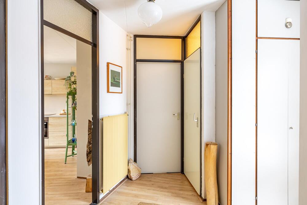 Ruime bijkeuken (ca. 9 m2), met loopdeur naar de voortuin. CV-ketel (2016, eigendom) en de opstelplaats voor de wasmachine.