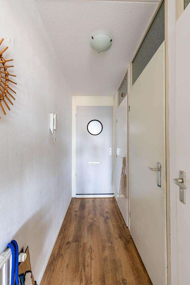 Entree met hal, lichte en ruime woonkamer (ca. 23m²) en halfopen keuken met veel opbergruimte (ca. 6m²), de keuken wordt deels onttrokken aan het zicht door een hoge bar. Vanuit de woonkamer is er toegang tot het balkon op het zuidoosten gelegen. Door de ligging op de derde verdieping heb je vanaf hier een prachtig uitzicht over het zuiden van Groningen.