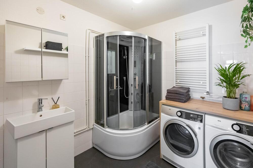 Eerste verdieping: entree/hal met trapopgang en toiletruimte. Twee slaapkamers (15 en 16 m2). De keurige (en gepimpte) badkamer (6 m2) is v.v. een douchecabine, wastafelmeubel, designradiator en wasmachineaansluiting.