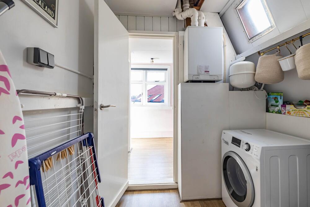 Derde verdieping: ruime vliering (nokhoogte 1,8 m) te bereiken door middel van een vlizotrap.